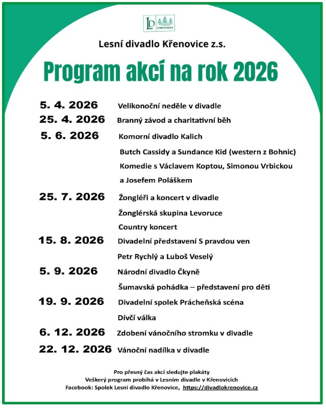 Lesní divadlo Křenovice z.s. program akcí 2026